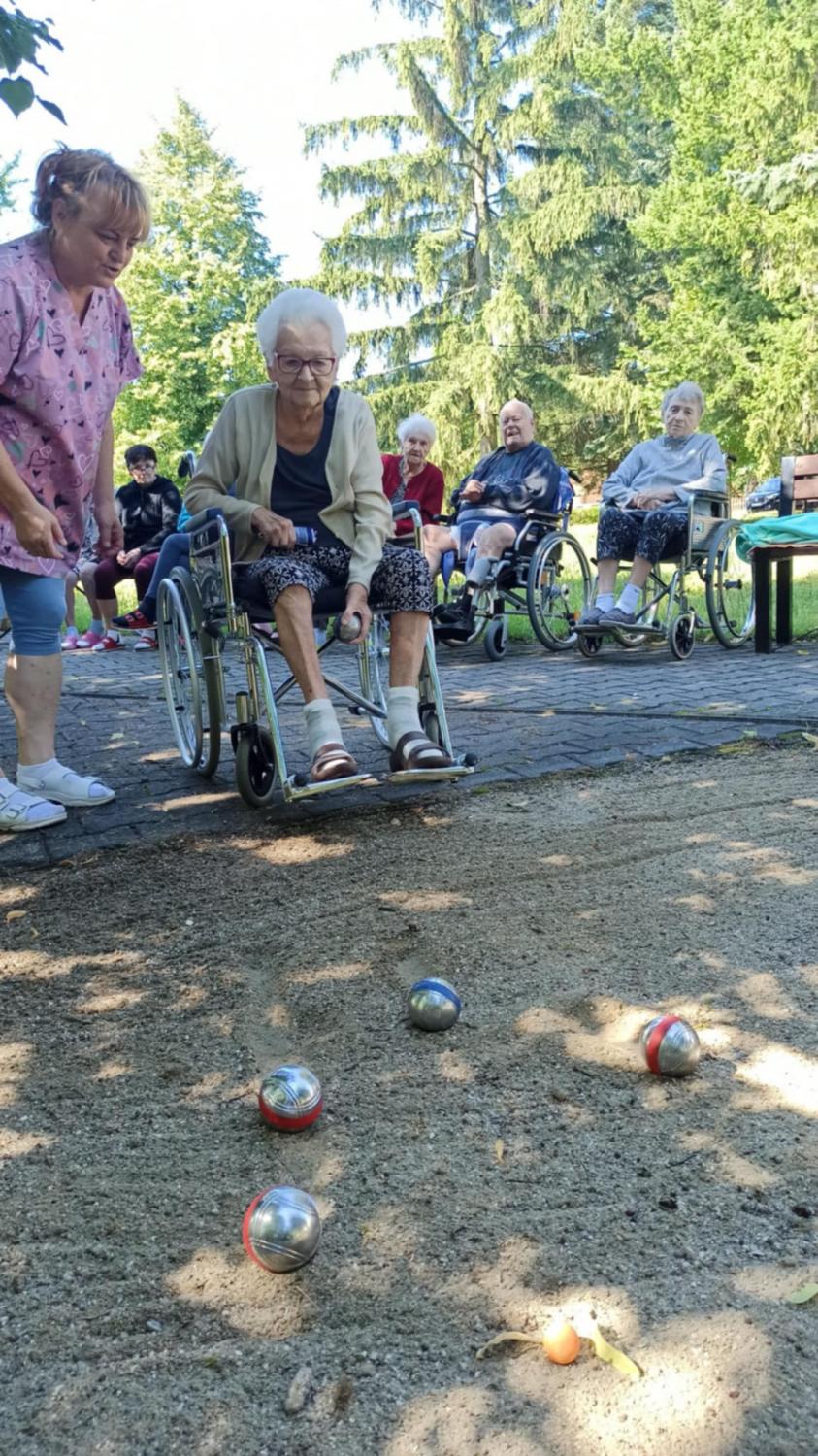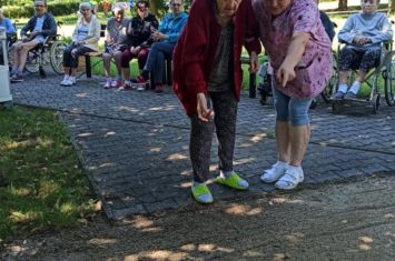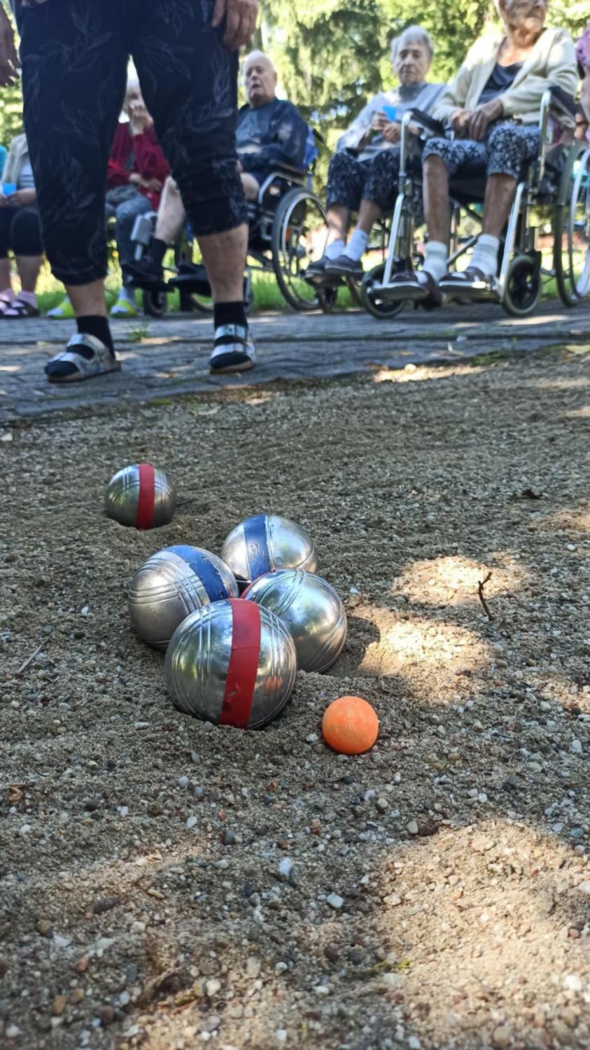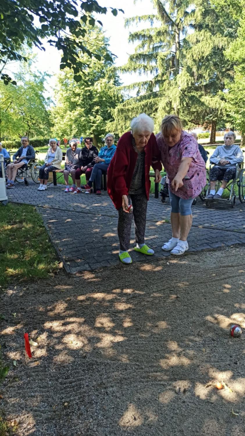 Počasí nám přeje. Nemusíme se schovávat před ostrým sluníčkem a vysokými teplotami a můžeme se bavit na zahradě - soutěžit, trochu sportovat, procvičovat motoriku i mozkové závity. I takto vypadají naše sportovky.