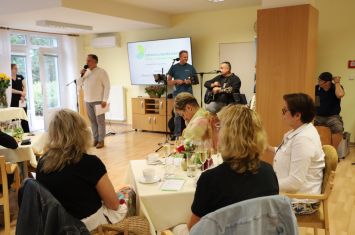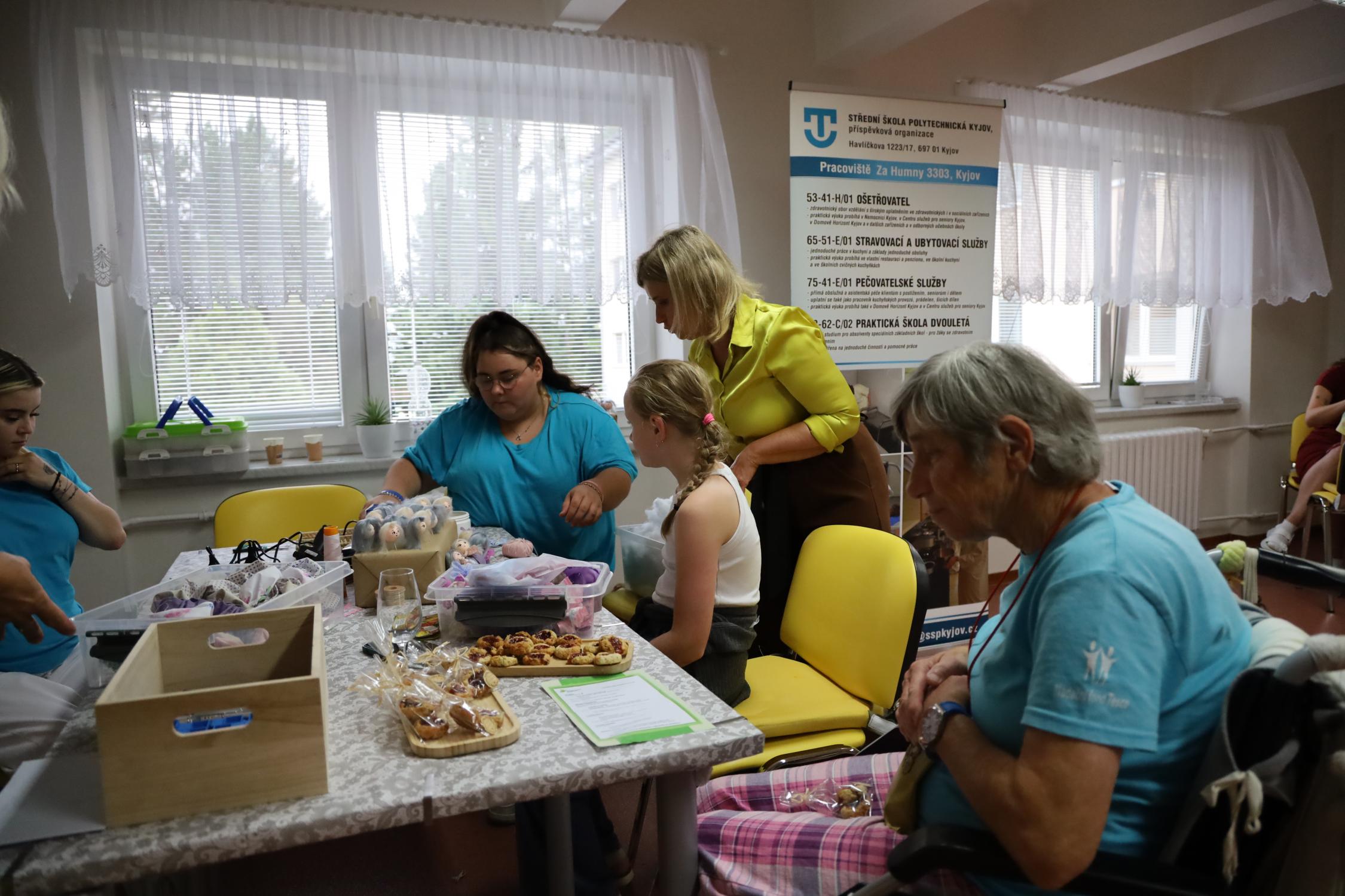 Tradiční den otevřených dveří se po roce zase vrátil do našeho domova, kde to od jara svítí novotou. Alespoň v původní budově, kterou jsme kompletně zrekonstruovali a návštěvníci si mohli nové prostory prohlédnout. Ve spolupráci s našimi tradičními partnery - Klvaňovo gymnázium a Střední zdravotnická škola Kyjov, Střední polytechnická škola Kyjov, terapeuty, a především s vydatným přispěním našich zaměstnanců, se podařilo připravit úžasné odpoledne plné aktivit pro naše seniory, návštěvníky i děti. Dobrou náladu zajistila také skvělá kapela Kdo má čas z Mikulova.